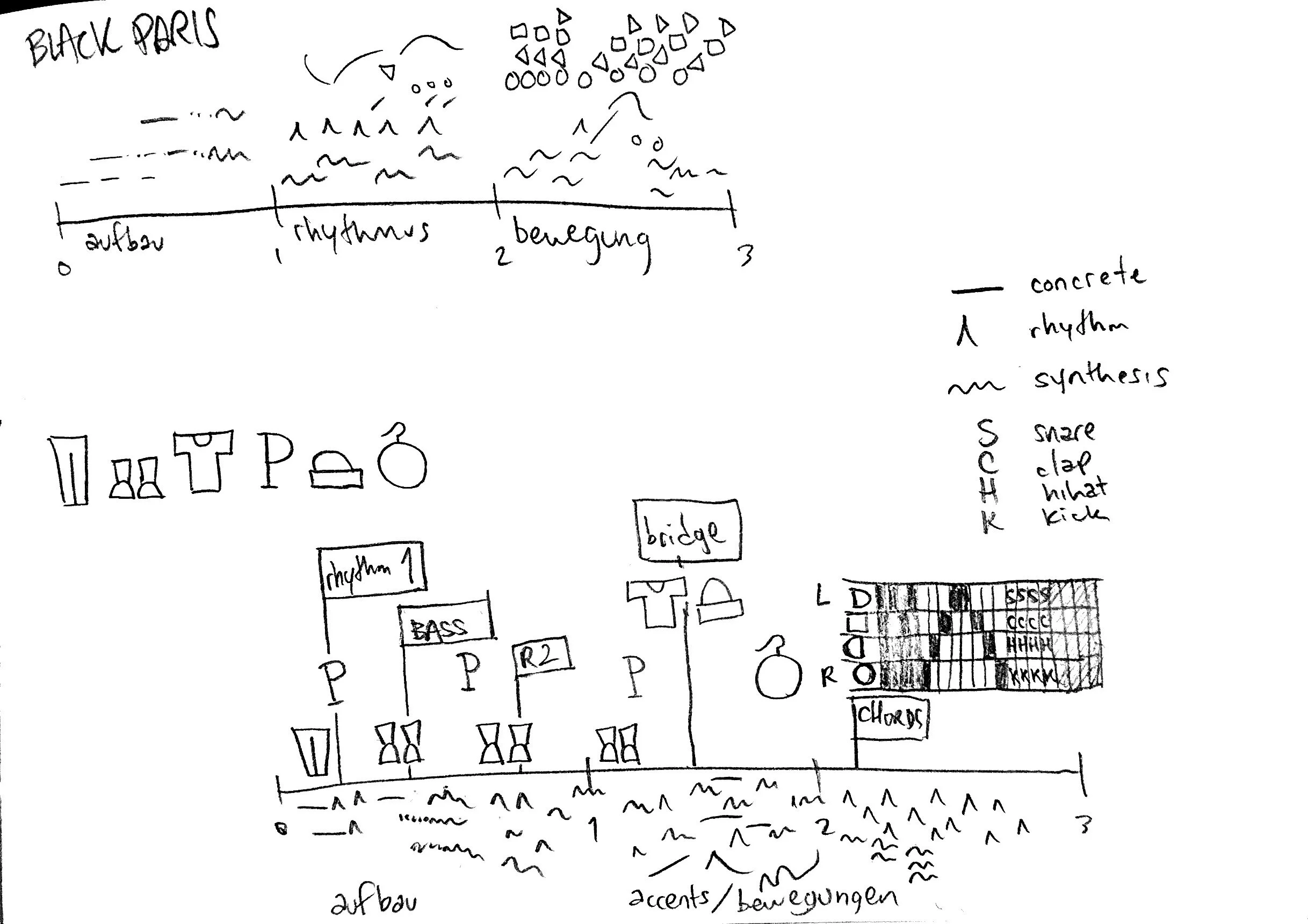 An early graphic notation for Black Paris, the first track I created for the EP – and the one that took the longest to get right.